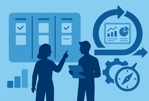 Implementamos Scrum/Kanban y OKR con PMO ágil, métricas de flujo (lead time, throughput) y coaching. Entrega de valor continua desde el primer mes.
